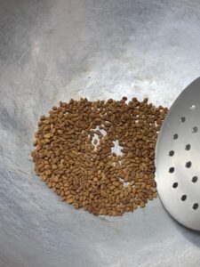 - Roast fenugreek too the same way, till it becomes golden brown. This will take just 2-3min if the pan is hot.