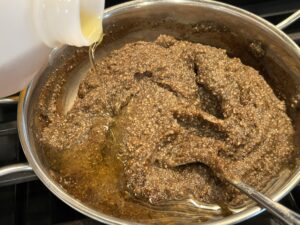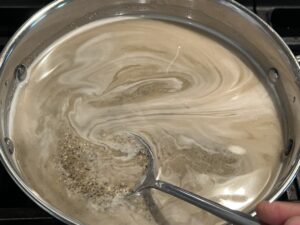 - add 2.5 cups water to the flour and make sure to mix it without lumps.