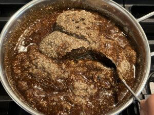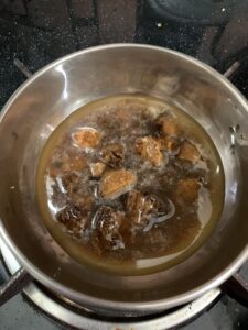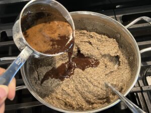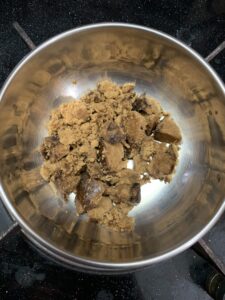 - Add water to palm jaggery and keep it in low flame, making sure to mix it until fully dissolved.